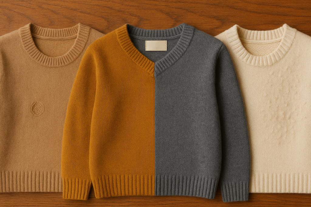 秋冬といえばやはりニット。セーターやカーディガンは着心地が柔らかく暖かい反面、繊細な素材のためダメージが出やすいアイテムです。虫食いによる小さな穴や、摩擦による毛羽立ちは多くの方が経験しているはずです。そのまま放置すると穴が広がったり、生地全体が劣化してしまうため、早めのお直しが肝心です。